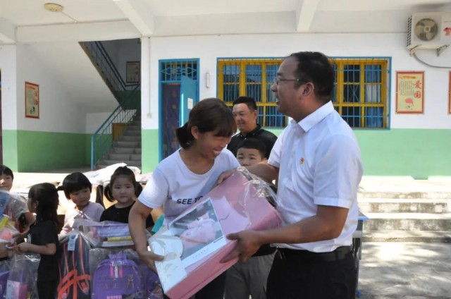 本網(wǎng)訊 9月3日,在新學期來臨之際,炎黃科技園聯(lián)合黨支部書 記、執(zhí)行總經(jīng)理楊哲帶領聯(lián)合黨支部的黨員代表到洛陽市嵩縣大章鎮(zhèn)趙樓村小學走訪慰問,為老師和孩子們送去開學“禮包”。